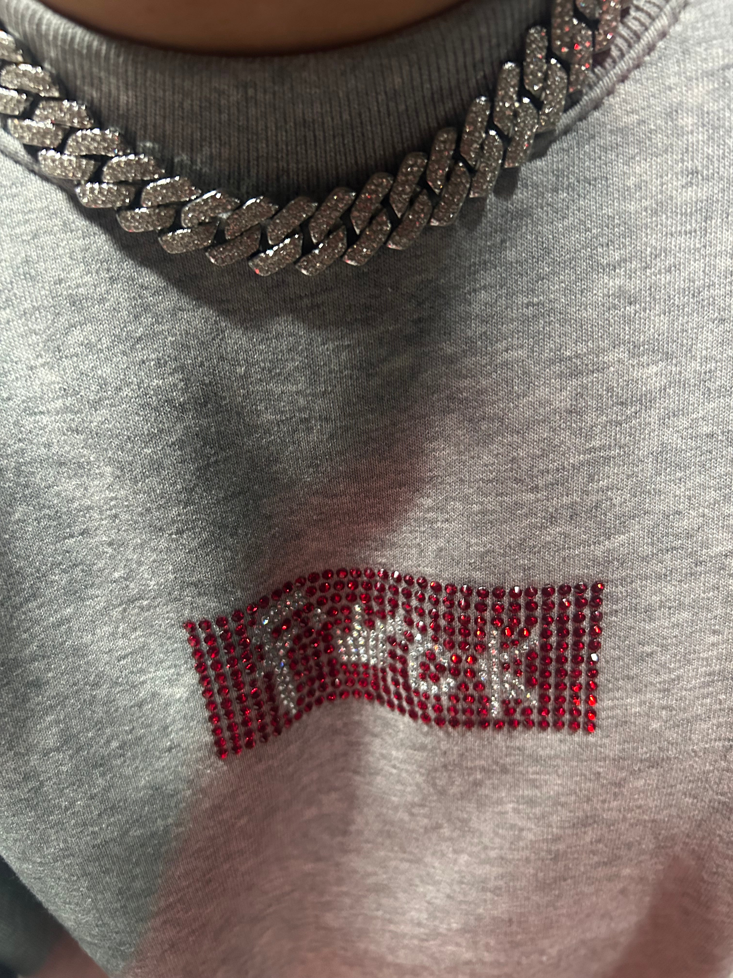 全面に敷き詰められたラインストーンが、光を受けるたびにラグジュアリーな輝きを放ちます。
